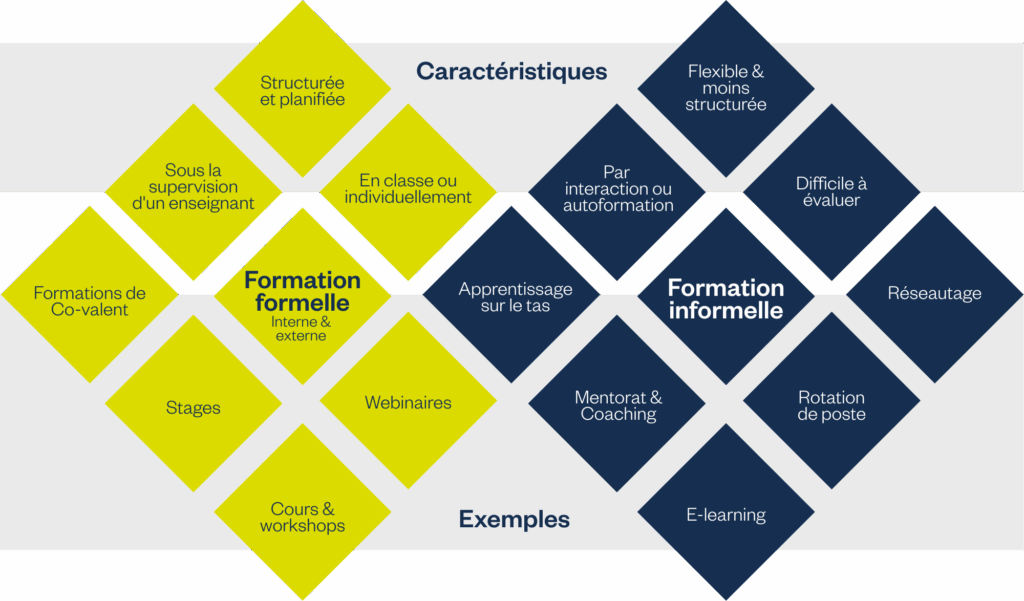 - Peut-il être résolu par une formation formelle (moment de formation planifié) ou une formation informelle (mentorat, tutorat, apprentissage sur le tas) ?