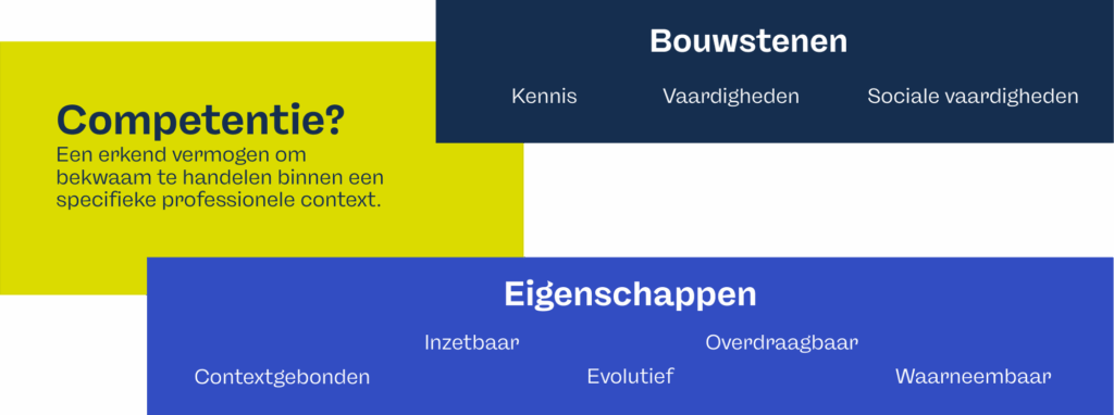 Competenties zijn anders. Die kun je ontwikkelen en versterken door te oefenen en ervaring op te doen. Het is een erkende vaardigheid in een professionele context en ontstaat door een combinatie van: